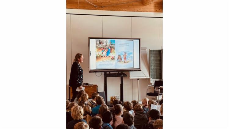 Mit viel Begeisterung erzählte sie von ihrer Arbeit als Illustratorin (und Autorin) und nahm die Kinder mit auf eine kreative Reise hinter die Kulissen ihrer Bilderwelt. Besonders spannend war die Lesung aus ihrem eigenen Buch Otis & Otilie – Ein Pony zum Frühstück, die die Schülerinnen und Schüler in ihren Bann zog.